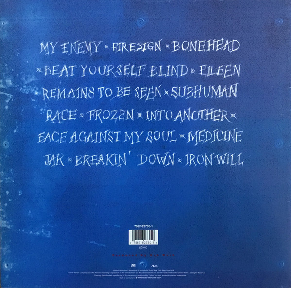 “Frozen” segue a mesma pegada, uma faixa intensa e com boas doses de peso. “Into Another” é mais suave, uma balada agradável, mas nada memorável. “Face Against My Face” tem mais cara de Rock alternativo, sendo bem mediana. “Medicine Jar” segue a sonoridade majoritária do disco, com bastante peso. “Breakin’ Down” é uma canção que também flerta com o alternativo, sendo bonita. “Iron Will” é uma faixa intensa que encerra o disco.