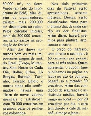 Cerca de 8 mil pessoas (alguns dados citam 5 mil) juntaram-se para curtir o evento que ficou conhecido como o Woodstock Mineiro, e a revista Pop de agosto de 1975 destacou que “A maior surpresa foi o encontro Fagner/Ney Matogrosso“. A dupla se apresentou no último dia do evento. Fagner cantou primeiro sozinho, para então chamar Ney, vestido como um caubói, de chapéu-panamá e calça Lee. Com suas vozes contrastantes, mostraram as duas canções que haviam ensaiado, que levaram a plateia ao delírio, prometendo então levar o trabalho adiante. Poucos sabiam quem era o tal Ney, e só ligariam o Ney do palco ao Ney de suas memórias quando ouviram o timbre da voz reconhecível até por uma marmota bêbada. Vale ressaltar as outras atrações do domingo 20: Saecula Saecuorum, Sérgio Mello, Ney/Fagner, Sá & Guarabyra e O Terço.