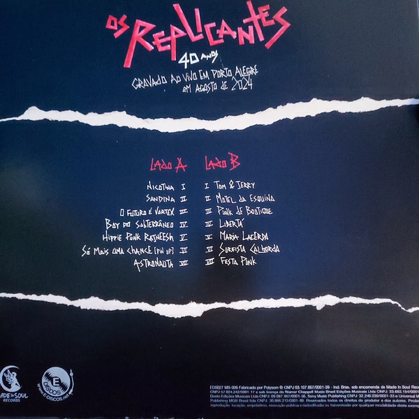 No ano de 2024, o grupo de punk rock gaúcho Os Replicantes completou quatro décadas de atividades sobre os palcos. Para celebrar a ocasião, um show da banda foi marcado para o dia 16 de maio daquele ano no Bar Opinião, em Porto Alegre, exatamente quarenta anos depois da primeira apresentação “oficial” da turma, ocorrida em 16 de maio de 1984 no seminal Bar Ocidente, na capital gaúcha. Infelizmente, a tragédia climática que se abateu sobre o Rio Grande do Sul no começo daquele maio de 2024 (causando, dentre outras tragédias, a maior enchente da história do Estado) fez com que a apresentação fosse postergada, com a “festa punk” ocorrendo somente no dia 15 de agosto daquele ano, em um Opinião completamente lotado para celebrar junto à banda este aniversário tão marcante. Parte da apresentação d’Os Replicantes naquela noite foi lançada oficialmente agora em julho de 2025 no disco Os Replicantes 40 Anos, através de uma parceria dos selos independentes E-Discos.net e Made In Soul Records. Com edição apenas em vinil (numa belíssima versão na cor preta esfumaçada, com capa gatefold, um encarte repleto de fotos e com a ficha técnica completa do show, tendo produção, mixagem e masterização a cargo de Lucas Hanke, da produtora Marquise 51), a bolachona traz alguns dos maiores clássicos da banda, além de algumas “surpresas” para os fãs de longa data.