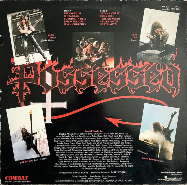 Cercado de clássicos do death metal, o disco abre com a vinheta de “The Exorcist”, de Mike Oldfield, que foi tocada nos teclados pelo produtor da banda, Randy Burns, dando espaço para a pauleira “The Exorcist”, do Possessed, como se dissessem “ISSO é uma música sobre exorcismo!“. As guitarras tomam contam das caixas de som, com a bateria quebrando tudo em um death super rápido. Os vocais de Becerra são sujos, na mesma linha de Cronos (Venom), e os riffs de guitarra, além de muito sujos, são rápidos e de dar medo. Temos o primeiro tema característico da canção, um riff que ficou para o death metal assim como o riff de “Paranoid” do Black Sabbath entrou para a história do heavy. Um hino venerado e amado por todos os seguidores do estilo.