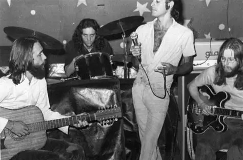 João Ricardo, Marcelo Frias, Ney Matogrosso e Willy Verdaguer, durante ensaio do Secos & Molhados