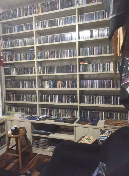 ESTOU TERMINANDO DE CATALOGAR MINHA COLEÇAO NO DISCOGS , SE OS AMIGOS QUISEREM VISTAR E UM PRAZER COMPARTILHAR O PERFIL E ROGERIO MORAIS. ATUALMENTE DEVO TER UNS 4.200 CDS, UNS 100 VINIS Q AINDA SOBRARAM, 100 FITAS CASSETES (pra não esquecer do sofrimento que elas nos proporcionaram, enrolando, arrebentando e mais Kkk), 300 DVDS, UNS 200 LIVROS, POSTERS, REVISTAS COMO ROADIE CREW, ROCK BRIGADE, BIZZ, SOM TRES, POP, POSTERS, MINIATURAS ESSAS COISAS QUE TODO ROCKEIRO COLECIONA KKKK