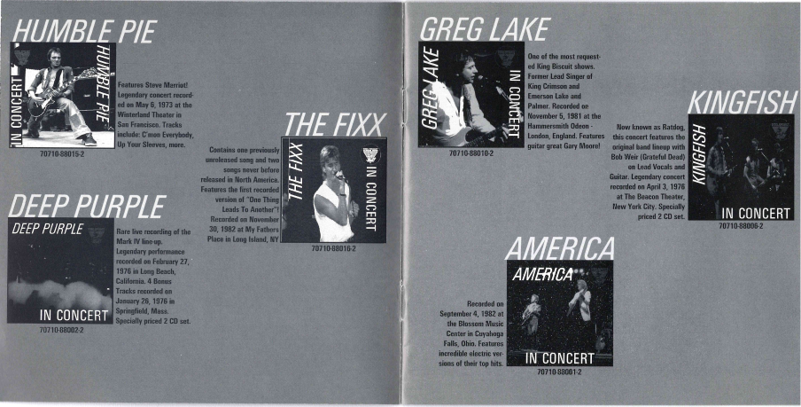 A King Biscuit Flower Hour Records lançou, segundo sua página no Discogs, nada menos que duzentos e trinta e nove álbuns ao vivo de centenas de bandas. É incrível passar os olhos sobre a variedade do catálogo e mesmo aquele fã que não gosta de determinada banda ou estilo encontraria ali dezenas de discos que certamente caberia em sua coleção. Eu mesmo fico namorando muitos dos títulos que estão ali listados e se tivesse a possibilidade, facilidade e, principalmente, como bancar tudo isso não seria loucura dizer que teria pelo menos uma centena deles, mesmo eu não sendo um grande comprador de discos ao vivo. É incrível pensar que o registro musical histórico de uma época está disponível nesses CDs. Essa coleção é extremamente colecionável e até a semelhança de suas capas que faz uma eventual coleção de vários títulos ficarem também visualmente interessantes. A semelhança das capas se perdeu nos posteriores relançamentos de alguns títulos, um erro a meu ver. Faça uma pesquisa dentro do catálogo que foi lançado por eles e conta aí nos comentários o que achou de interessante.